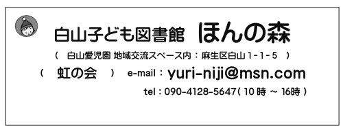 虹の会の活動は、ささやかな活動ではありますが、これからも、子どもたちがたくさんの本と人に出会い、地域の人々の心のオアシスとなる『みんなのとしょかん』を育てていこうと、心新たにしております。今後ともどうぞご支援のほどよろしくお願いいたします。